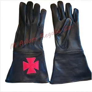 Guantes de algodón blanco templario de Caballero de la Cruz Roja bordados a máquina para uso masónico para uso diario y temporada de invierno