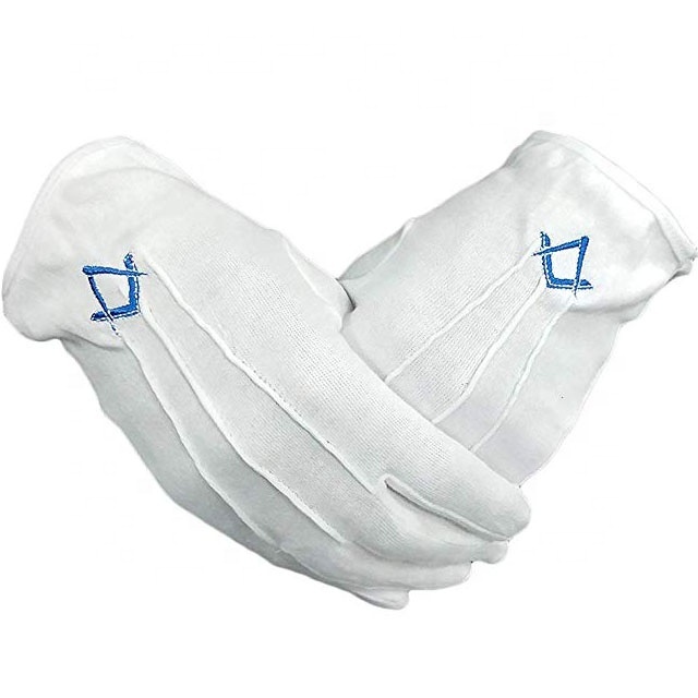הבונים החופשיים מחלצות רקום כפפות | לבן כותנה כפפות עם רויאל בלו רקמת כיכר ומצפן